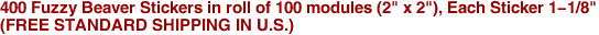 - 2. 400 Beaver Stickers in a roll of 100 modules (2" x 2").